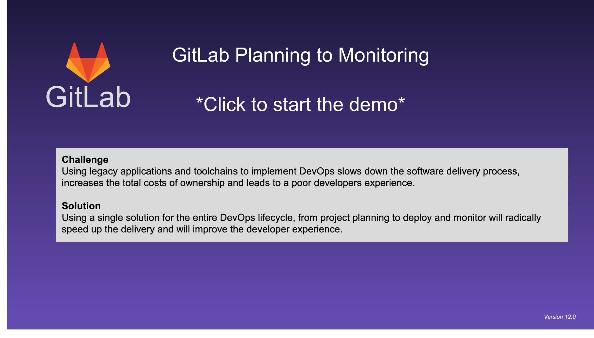 [G-slides file](https://docs.google.com/presentation/d/1oKHU3MsbJmxVQyO-7c6JLMoCOS80uS-0NlcI-mRxAAY/edit?usp=sharing) [Sales enablement recording (of shorter version)](https://youtu.be/V_6bR0Kjju8)Auto DevOps (short, guided) (July 2018 - 11.0)